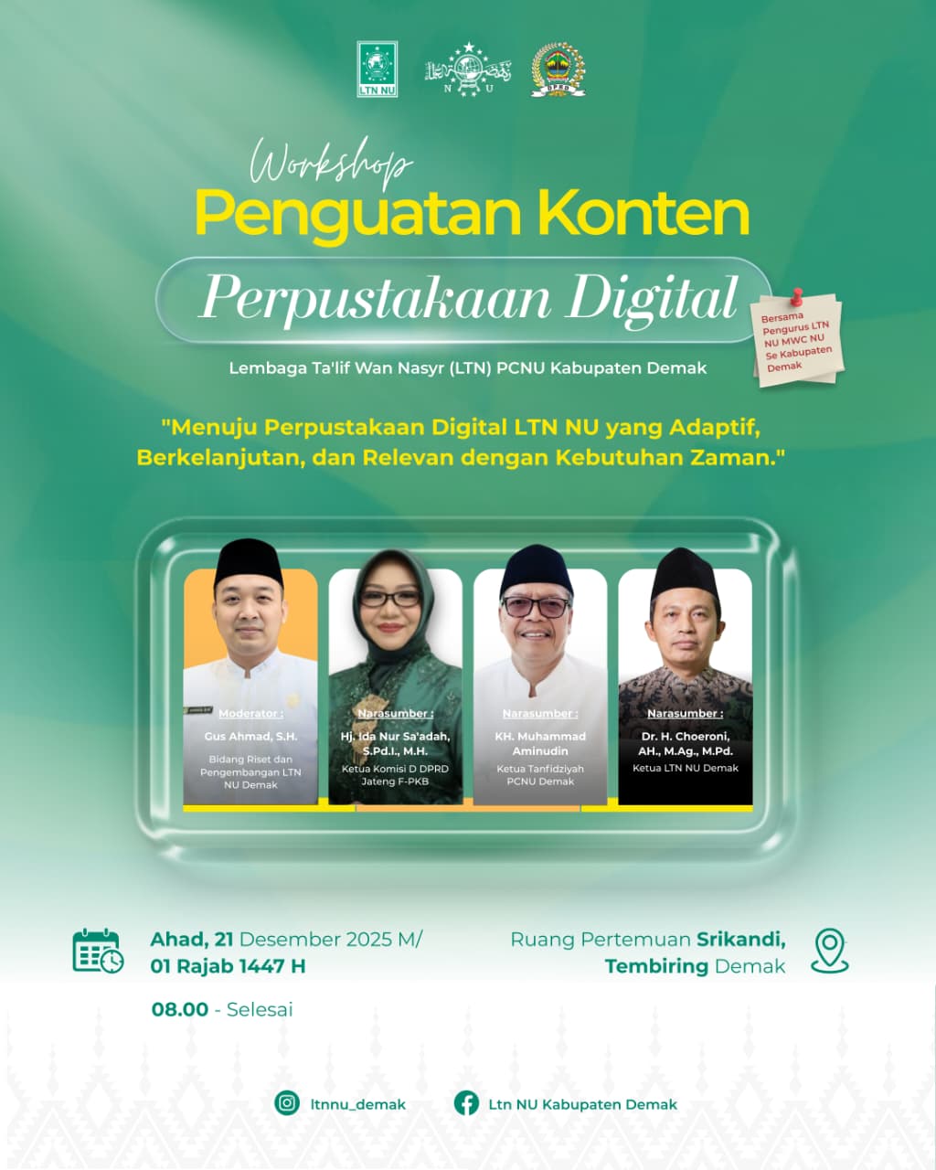 LTN PCNU Demak Akan Gelar Workshop Penguatan Konten Perpustakaan Digital